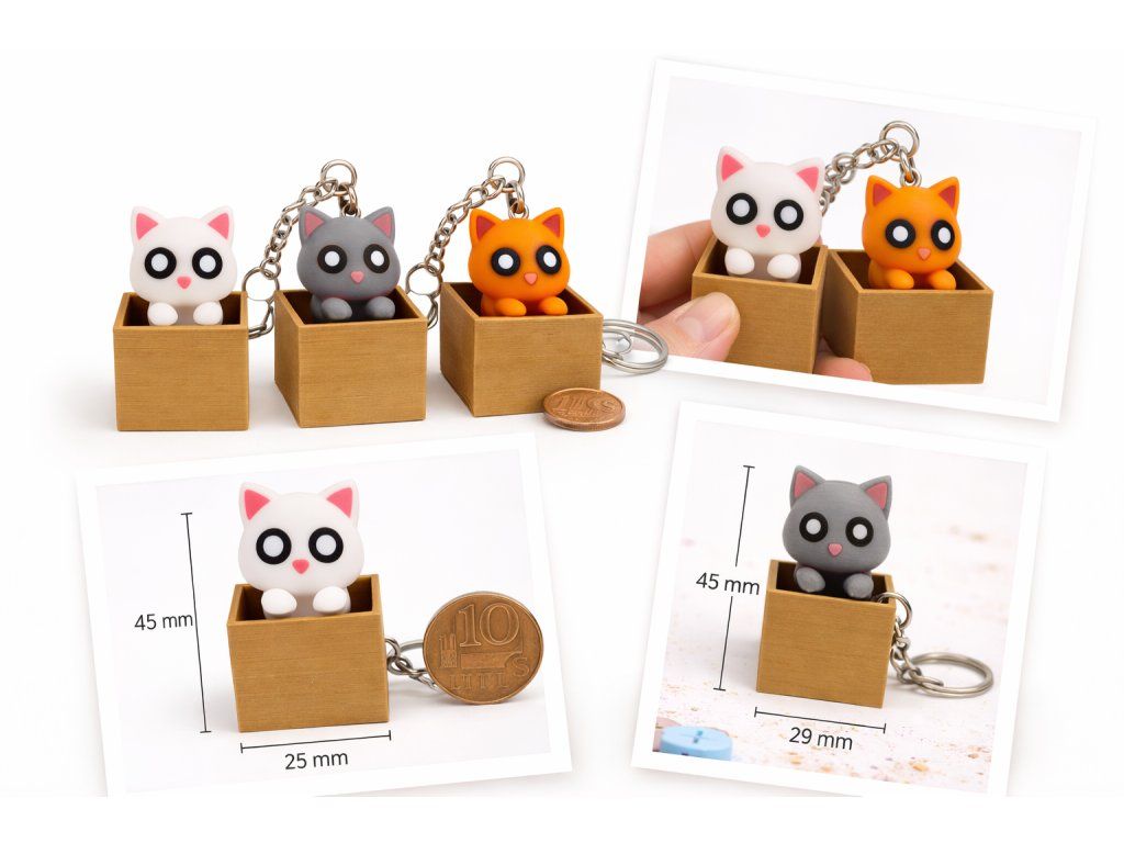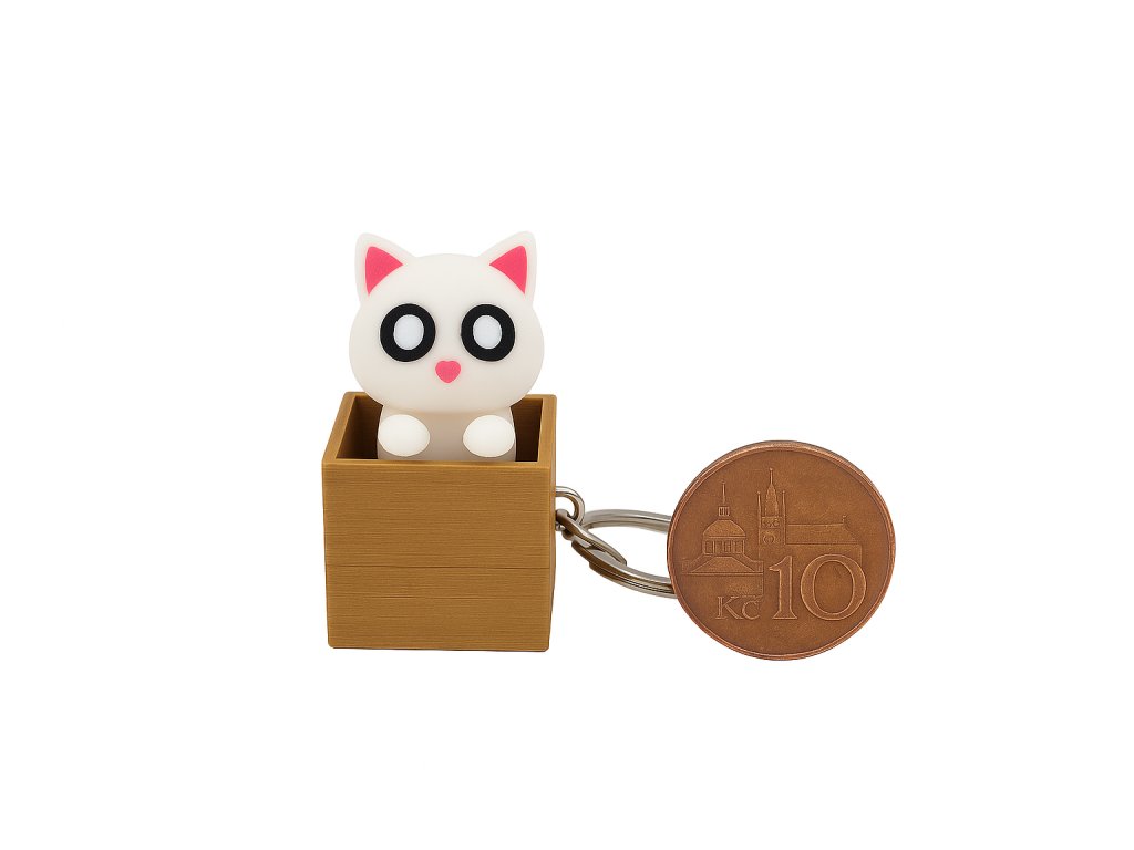 🐱 3D klíčenka „Kočička v krabičce“ – klikací